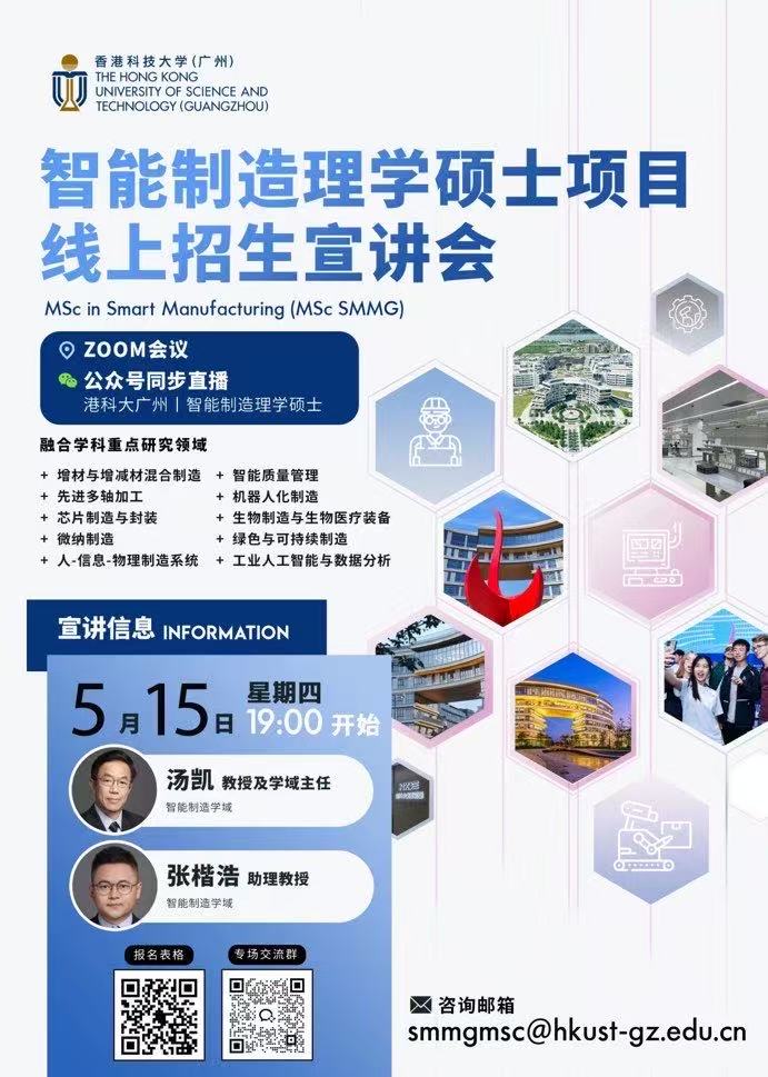 新开设!!香港科技大学(广州)新开设智能制造理学硕士学位项目2025年9月入学机会!!!