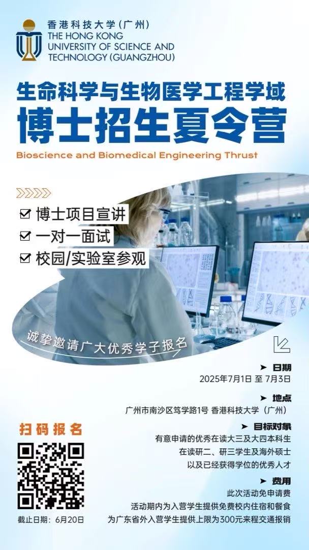 香港科技大学(广州) | 生命科学与生物医学工程学域博士夏令营报名召集!