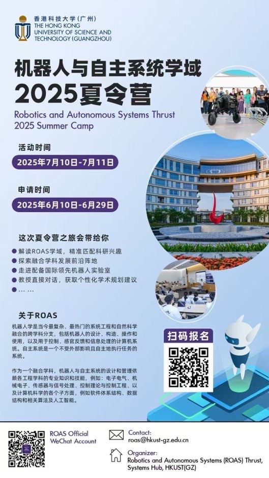 香港科技大学(广州)机器人与自主系统学域(ROAS)2025年度夏令营招募!